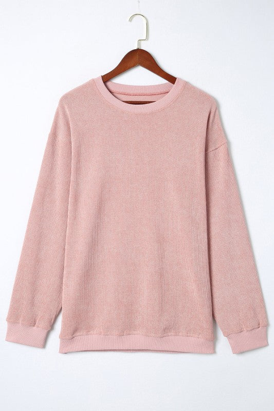 Solid Ribbed Knit Round Neck Pullover Sweatshirt